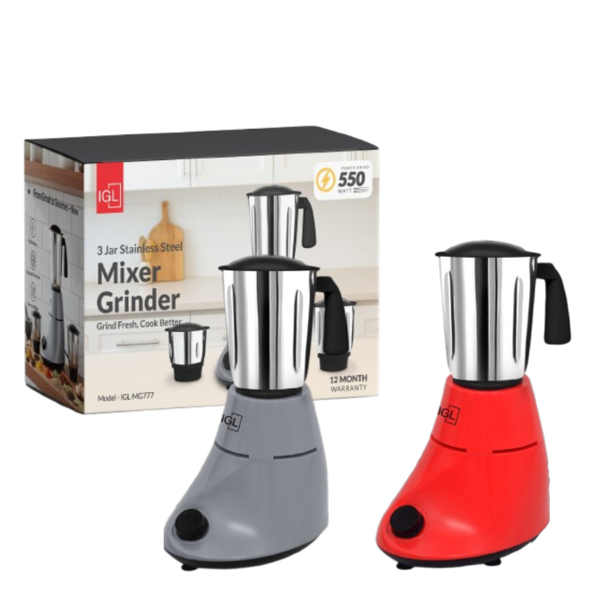 Powerful. Stylish. Built for Your Everyday Kitchen.Transform your daily cooking with the IGL Mixer Grinder IGL-MG777, a high-performance kitchen companion designed to make food preparation faster, easier, and more enjoyable. Whether you’re grinding spices, blending smoothies, or grinding batter for your favourite dishes, this mixer grinder delivers consistent results every time!