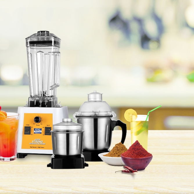 KENT Super Power Grinder and Blender has 30,000rpm electronic variable speed operation, so you can blend and grind anything within seconds. Whether it’s your favorite ice-crushed smoothie, chutney for snack time, dosa batter, or freshly grounded raw haldi, this kitchen appliance can do all.