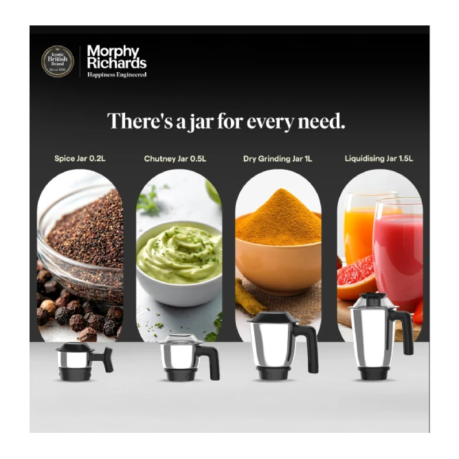 | Spice Grinding | 0.2L spice jar for fresh masala and ginger-garlic grinding |