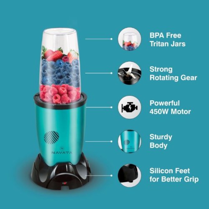 Powerful Motor: The navata Bullet Blender NABB-0001 is equipped with a robust 450-watt motor, ensuring efficient grinding and blending for various culinary tasks. The power of the motor is a key factor in determining the appliance's performance.