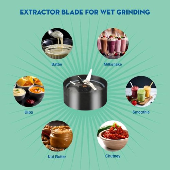Multiple Jars: This hand mixer blender comes with multiple jars designed for various purposes, enhancing its versatility. Whether you're grinding dry spices, blending liquids, or preparing chutneys, each jar serves a specific function to meet your diverse