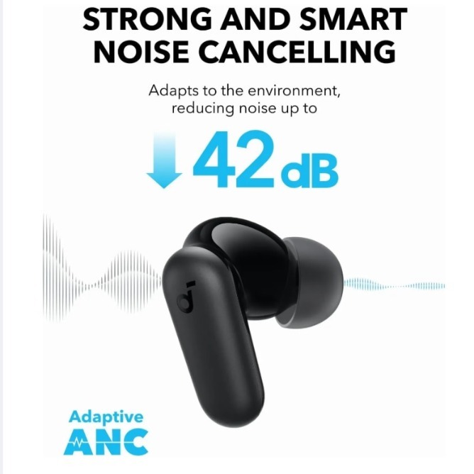 Strong and Smart Noise Cancelling: Reduce noise by up to 42dB with an advanced active noise cancelling system. With adaptive technology, soundcore R50i NC detects external sound and automatically selects a level of noise cancelling optimized for your ears.