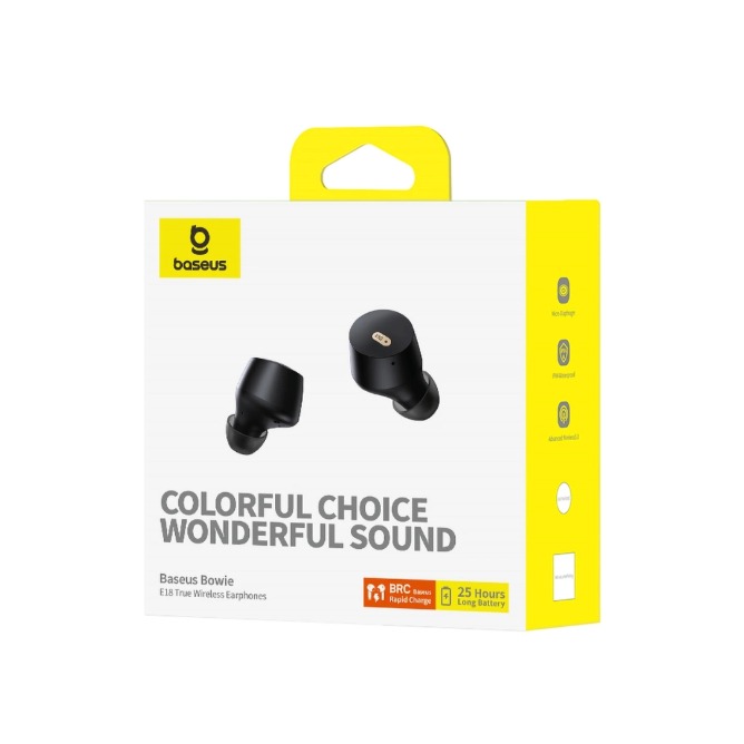 The long battery life of the Baseus Bowie E18 headphones guarantees music all day long. Up to 25 hours of playtime with the charging case means you don’t have to worry about frequent charging. Hassle-free travel, long training sessions or movie marathons – all this without interruption.