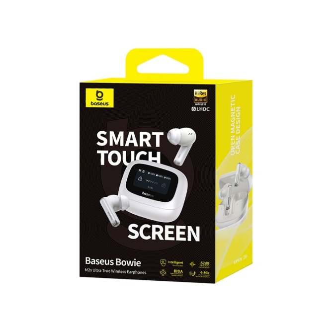 | Name | Baseus Bowie M2s Ultra True Wireless Earphones -52dB ANC, 4-Mic ENC, Smart Display, 0.06s Low Latency, Bluetooth 5.4 – White |