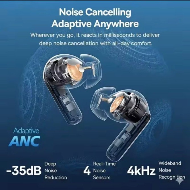 Active Noise Cancellation (ANC): Reduces ambient noise for an immersive listening experience.