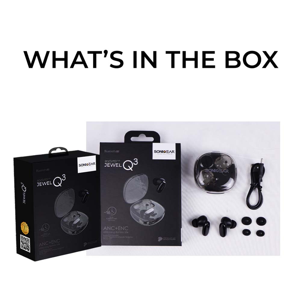 | What's in the Box | Jewel Q3 Earbuds, Type-C Charging Cable, 3 Size Ear Gels, User Manual |