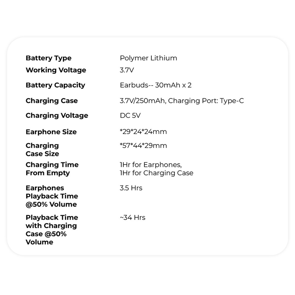 Earbuds Dimensions (L × W × H)   29 × 24 × 24 mm