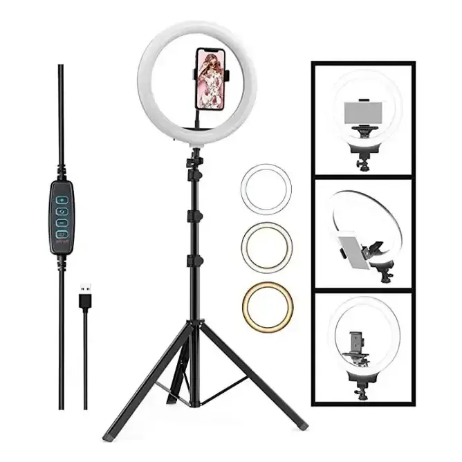 with dimmable led bulbs, selfie ring light with stand provides more brightness light and broader shooting for your photography/ live streaming than others. Circle light 10 levels brightness and 3 light tunes ( warm, nature, cold) will meet your needs for lighting under different occasions.