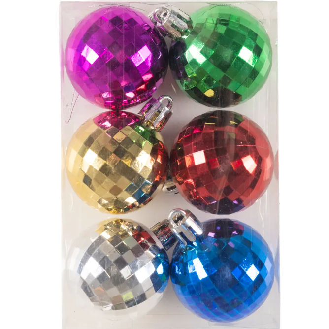 Add festive flair to your holiday decor with this 6-piece set of multicoloured Christmas ball ornaments. These classic, round baubles feature a vibrant, reflective finish, perfect for Christmas trees, garlands, tabletop decor, party setups, and holiday displays.