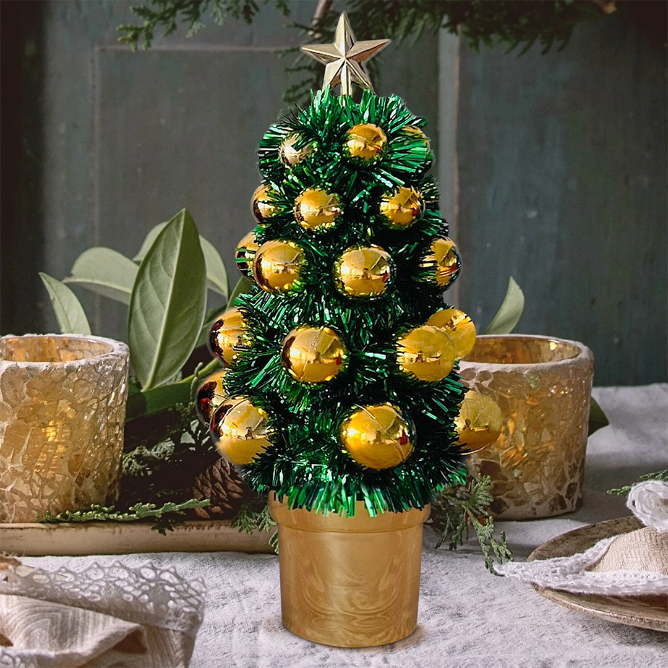 • Material: Made from durable PET and Polypropylene with tinsel branches and shiny baubles.