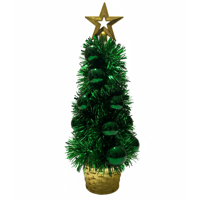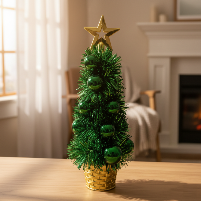 The tree arrives pre-decorated with tinsel, baubles, and a matching star topper — ready to display straight out of the box. Compact, lightweight, and durable, it’s the perfect no-fuss decoration for adding a touch of Christmas magic to any space.
