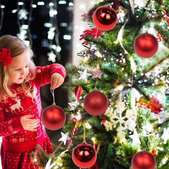 Add a vibrant festive touch to your holiday decor with this 12-piece set of shatterproof red Christmas ball ornaments. Featuring three elegant patterns and a mix of glossy and matte finishes, each 6 cm round bauble is crafted from durable polystyrene, making them lightweight and unbreakable.
