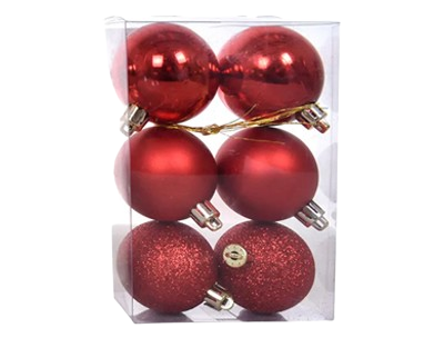 6 Pcs Red Color Big Ball Ornaments (Pack of 6 with 3 Different Patterns) – Tree Balls with Hanging Loop for Xmas Tree Holiday (5 cm)