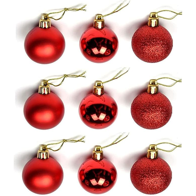 Bring festive cheer to your celebrations with this 16-piece set of red Christmas ball ornaments. Crafted from durable, lightweight polystyrene, these unbreakable baubles feature three elegant patterns with a modern finish, each measuring 5 cm in diameter.