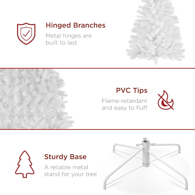 FULL PROFILE: This full figure artificial tree standing 8 feet tall is durable to last for years; Includes a premium white stand tree base