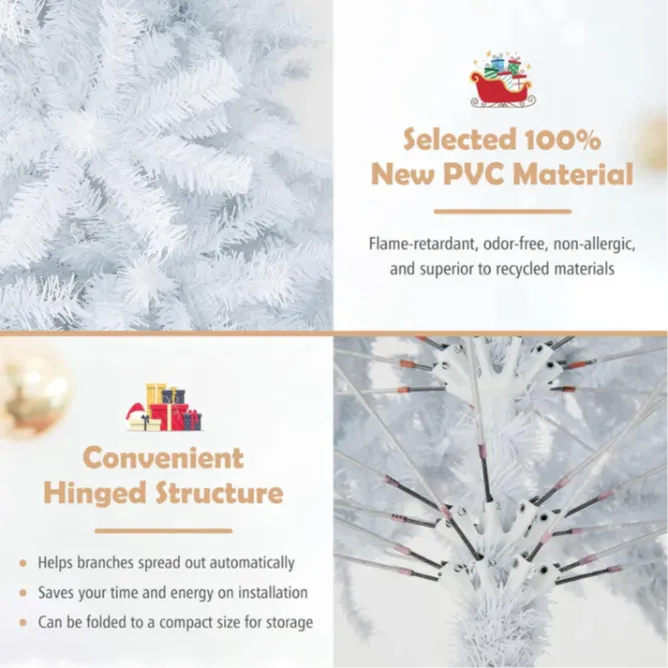 Unique White Appearance: Enjoying the unique white appearance, our artificial Christmas tree will be the most attractive thing in your Christmas party. Distinguished with other green tree that normal and dull, white color is eye-catching and bright. Most of girls will fall in love with it and willing to decorate it.