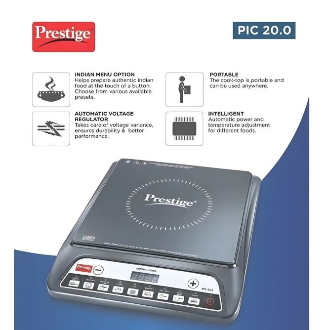 Facing the LPG gas shortage? The Prestige Induction Cooktop PIC 20.0 is your perfect gas-free cooking solution. This high-performance single burner electric stove heats instantly, allowing you to cook safely and efficiently without relying on gas.