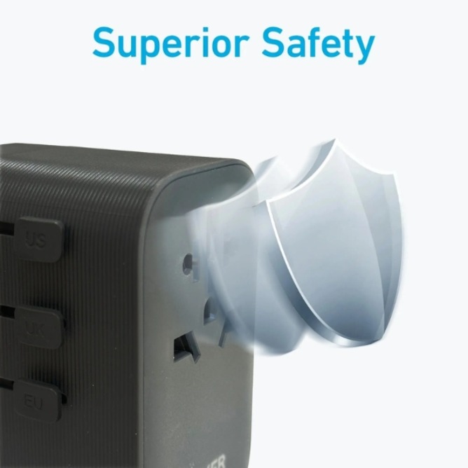 Travel smarter with the Anker PowerExtend Travel Adapter 65W, an all-in-one solution designed for global adventures. Supporting plugs for US, UK, EU, and AUS, it works in over 150+ countries, making it your perfect travel companion. Compact and lightweight, it fits easily in your hand or bag without taking up space.