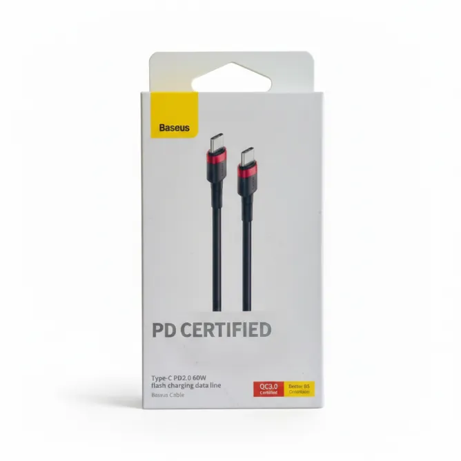 Charge your devices faster with the Baseus PD Certified USB-C to USB-C cable, supporting up to 60W Power Delivery fast charging. Perfect for smartphones, tablets, laptops, and other USB-C devices.