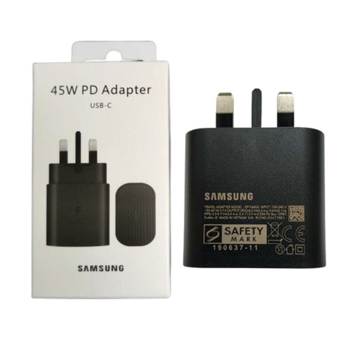 The 45W Travel Adapter also charges at 15W. So it safely charges your other devices and your friends’ Galaxy devices too, even if their Galaxy device doesn’t support Super Fast Charging 2.0. Comes With a Type-C Cable.