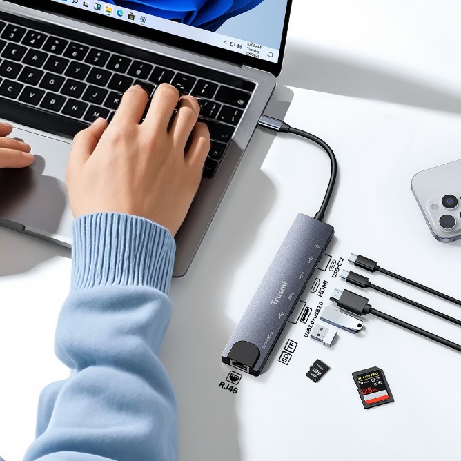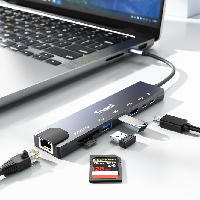 | Product Name | TRUSMI DS01-02 Type-C to USB 3.02+Type-C2+HDMI+RJ45+SD/TF PD100W |