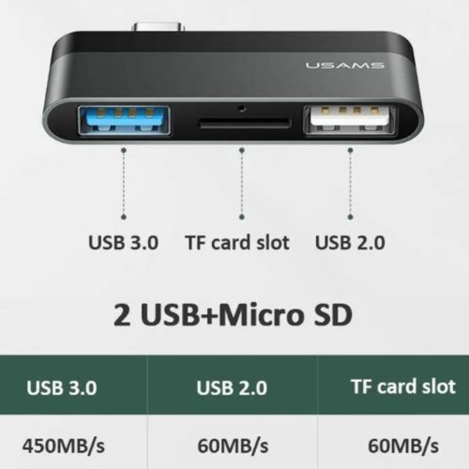 Expand your device connectivity with the USAMS US-SJ463 Type-C Mini HUB. This compact hub allows you to connect multiple USB devices and read Micro SD cards easily using a single Type-C port.