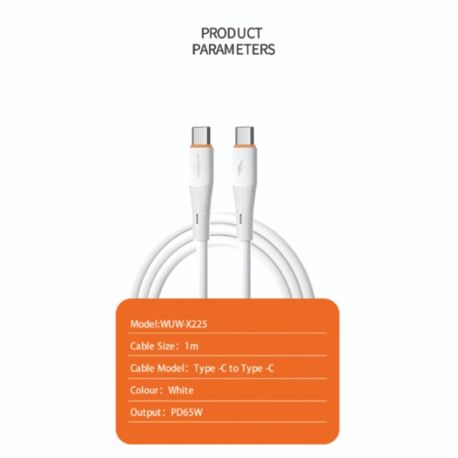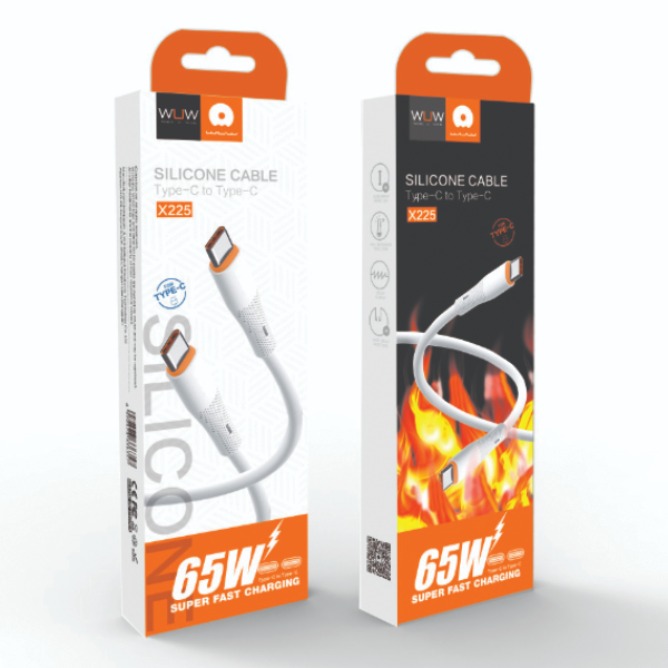 The WUW Silicone X225 65W Type-C to Type-C Cable is designed for super-fast charging and high-speed data transfer. Built with premium soft silicone material, this cable is flexible, durable, and tangle-free, making it perfect for daily use.