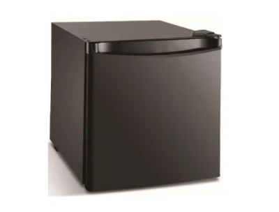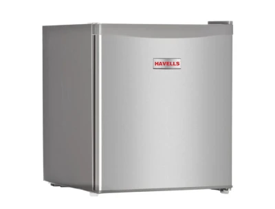 The Haier HRD-55KS is a 42-litre, mini-bar refrigerator. It features direct-cool cooling, toughened glass shelves, a steel door finish, and comes with a lock. It uses R600a refrigerant and is compact in size for easy fitting.