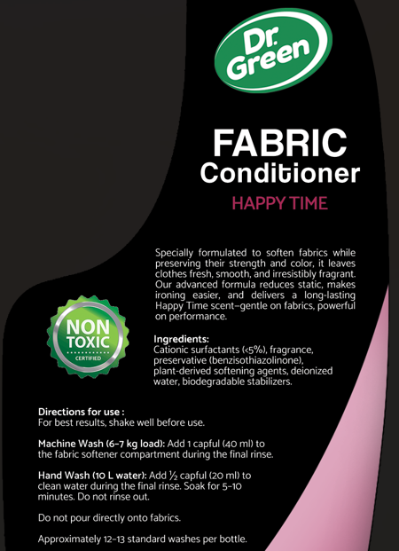 Dr Green Fabric Conditioner (500ml) is a premium, eco-conscious solution designed to elevate your laundry experience. Infused with a delightful blend of fruity and floral notes, it leaves your clothes enveloped in a refreshing, long-lasting aroma.
