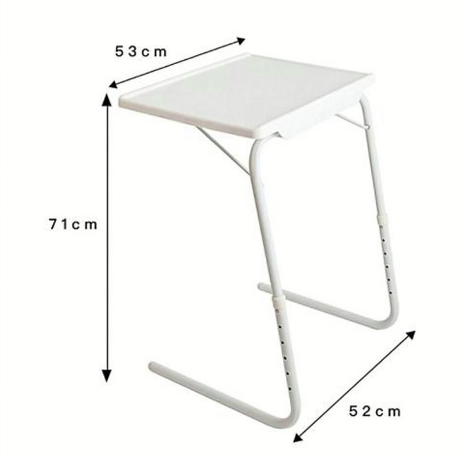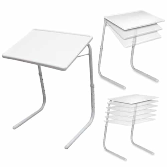 A portable, adjustable tray table designed for versatile use—whether for eating, working on a laptop, reading, or relaxing on the sofa. It folds flat for storage and features height and angle adjustability to suit different seating positions.