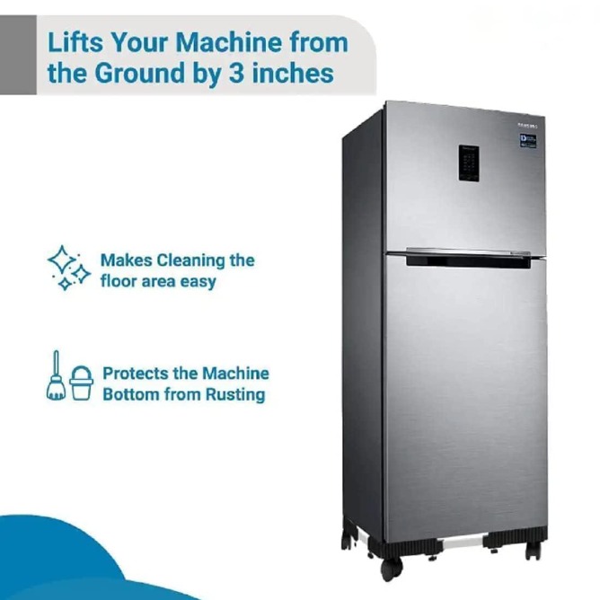 A movable fridge base (also called a mobile pedestal, appliance trolley, or adjustable stand with wheels) is a support platform designed to elevate your refrigerator (or other heavy appliance) off the floor and allow for easy repositioning or cleaning beneath. Many models come with caster wheels (some lockable), adjustable dimensions, anti-vibration feet and durable construction.