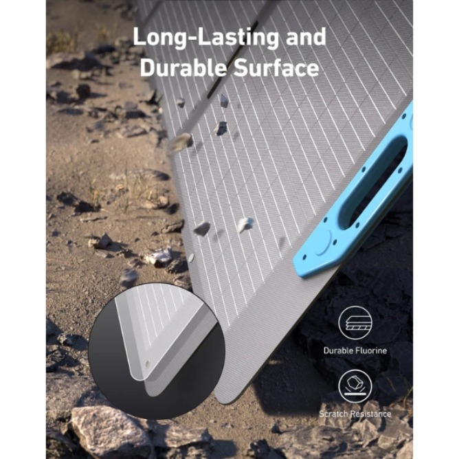 The Anker SOLIX PS200 Portable Solar Panel A24360A1 is designed for reliable off-grid power with high-efficiency monocrystalline solar cells that deliver up to 23% energy conversion efficiency. Its adjustable stand with four angles (30°, 40°, 50°, and 80°) allows you to capture maximum sunlight throughout the day and across different seasons, ensuring consistent charging performance wherever you are.
