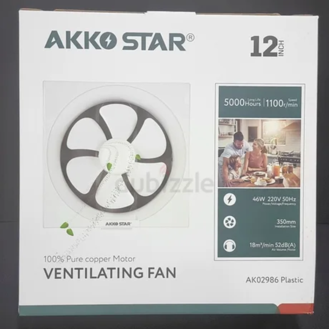 Upgrade your space with the Akko Star 12-Inch Ventilating Fan 02986 – the perfect solution for maintaining fresh, clean, and comfortable air in homes, offices, kitchens, bathrooms, and small commercial spaces.