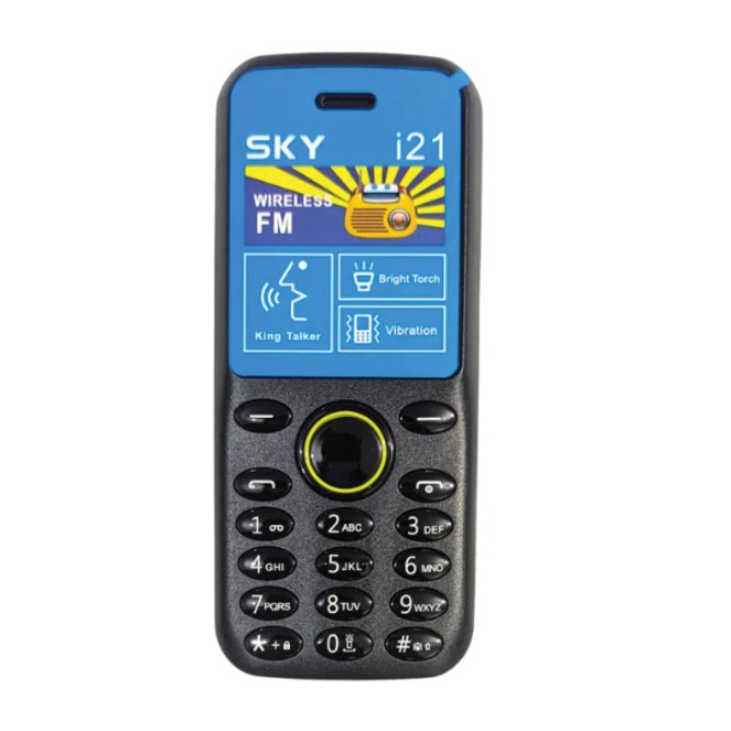 SKY i21 is a reliable and easy-to-use dual SIM feature phone designed for everyday calling. With long battery life, wireless FM radio, and a bright torch light, it’s perfect for daily use or as a backup phone.