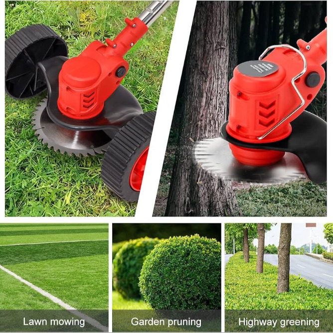 Professional Electric Gardening Tool, lithium battery has UN and MSDS certification. Our accessories include 1 x Electric Weeder; 1 x Circular Saw Blade; 2 x Battery; 1 x Charger; 4 x Plastic blade; 2 x Stainless steel blade; 1 Set of Accessories.; Please ensure that the mower is properly maintained up in time after each mowing for later use.