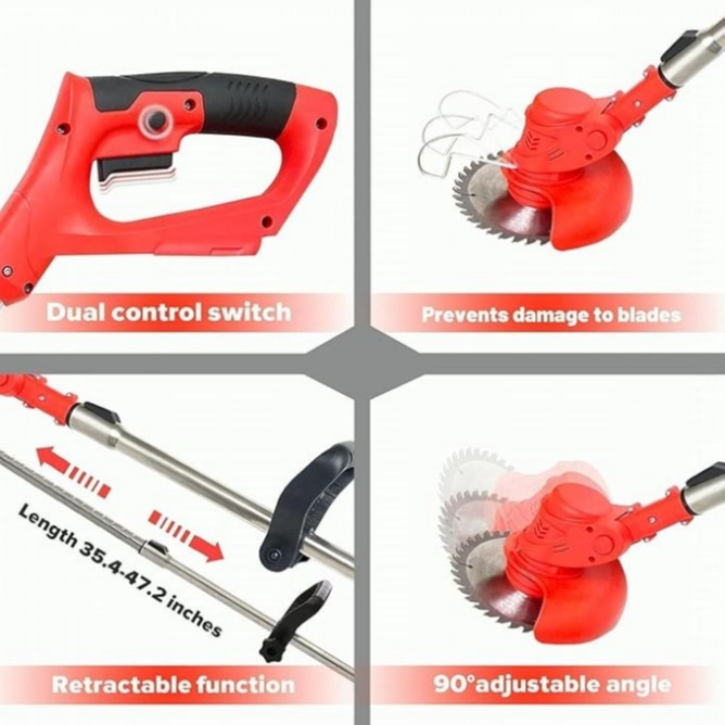 High-power 600W motor with 12V 3000 mAh rechargeable lithium-ion battery