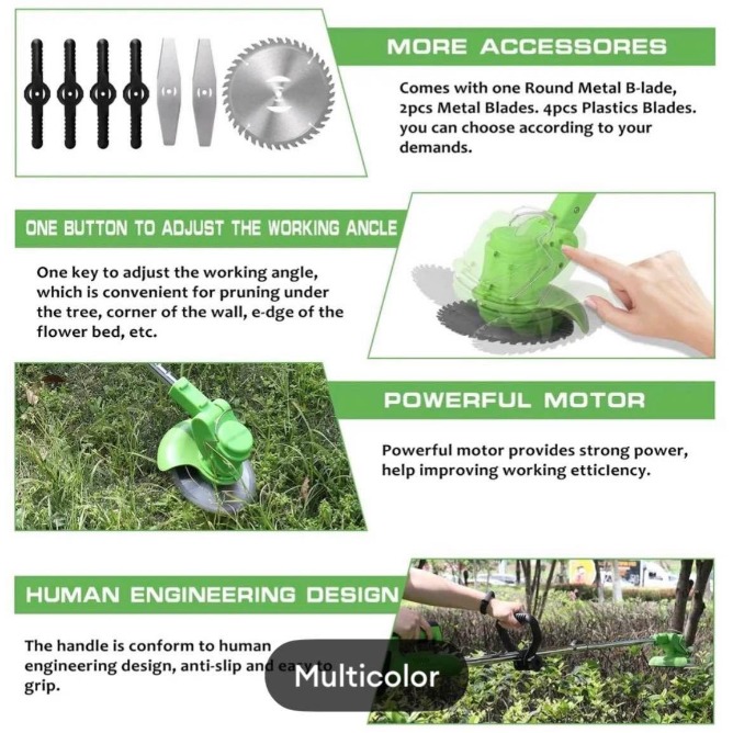 Durable and Reliable Design: This electric brush cutter machine includes a robust electric grass cutter, making it a dependable choice for any battery operated grass cutting machine need. Suitable for maintaining a pristine garden environment.