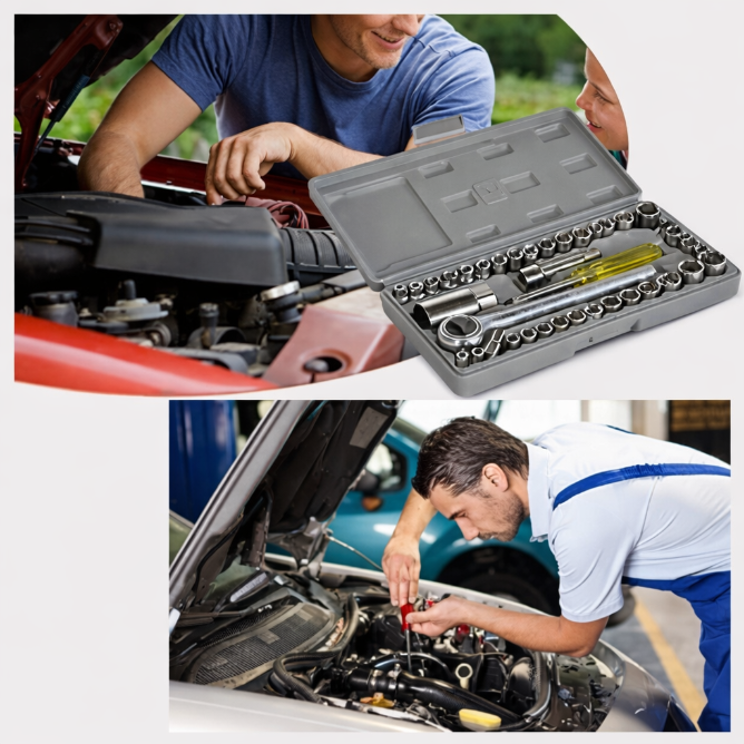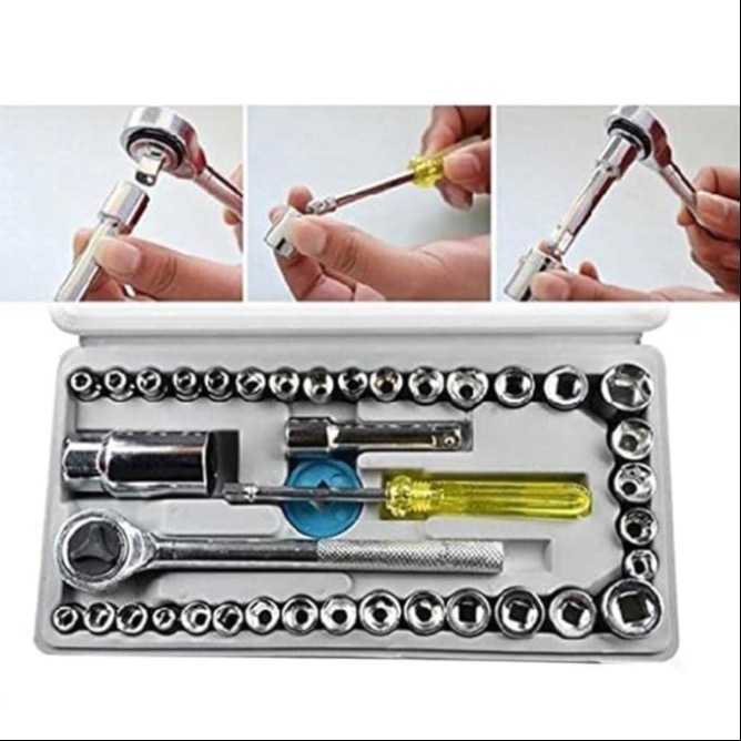 A 40pcs Tool Kit is an all-in-one collection of essential hand tools organized in a compact carry case or toolbox. Designed for general maintenance, repair, and DIY tasks, this kit includes a variety of drivers, sockets, wrenches, pliers, measuring tools, and accessories to help you handle everyday jobs around the home, garage, office, or workshop. Whether you’re tightening bolts, assembling furniture, fixing appliances, or performing emergency roadside repairs, this toolkit provides reliable tools in one convenient package.