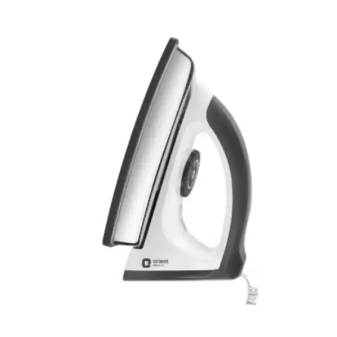 Orient Electric DIUTP11WM is a robust 1100 W dry iron featuring a U-shaped soleplate with nonstick Wielburger coating for smooth gliding across fabrics. It includes a 360° swivel cord, silver-layered thermostat, and auto shut-off protection. It delivers efficient, wrinkle-free ironing.