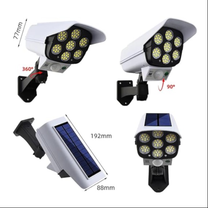 2 in 1 Solar Light & Security Dummy Camera - Keep your home property safe and intruders away. With 77 Bright SMD LED, motion-activated, sleek Low profile design. Plus realistic dummy security camera. Detect Intruders Stay away from your household