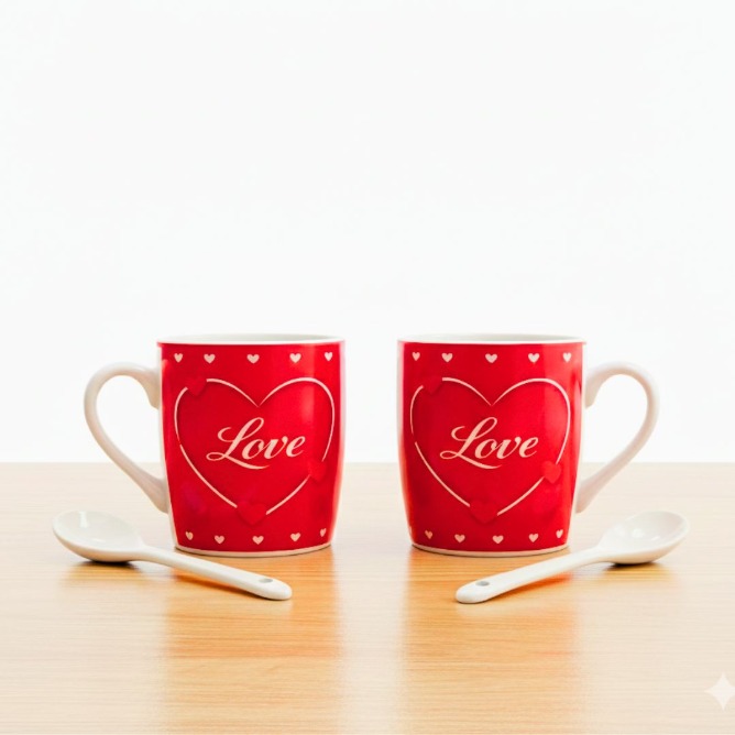 • Celebrate love and togetherness with the Love Mug Gift Pack, a thoughtfully designed gift set created for meaningful moments. This romantic pack includes two ceramic mugs and two matching ceramic spoons, beautifully arranged in an elegant gift box.