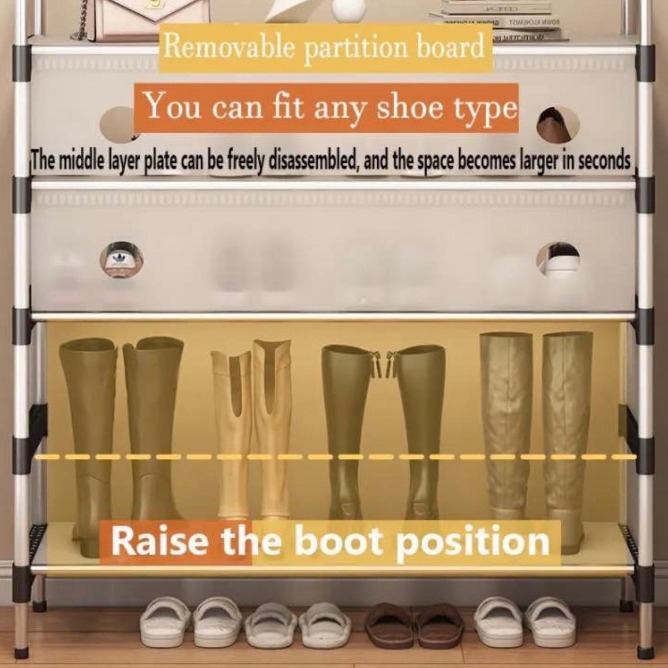 The removable dustproof cover helps protect your footwear from dust and moisture, while the top hanging space allows convenient storage for clothes, jackets, or accessories. Its space-saving design makes it ideal for small or large homes alike.