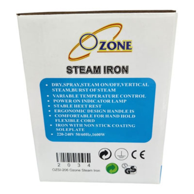The Ozone Steam Iron OZSI-206 is a powerful and reliable iron designed to give perfectly pressed clothes with ease. Equipped with multiple ironing modes, it is suitable for all types of fabrics and daily household use.