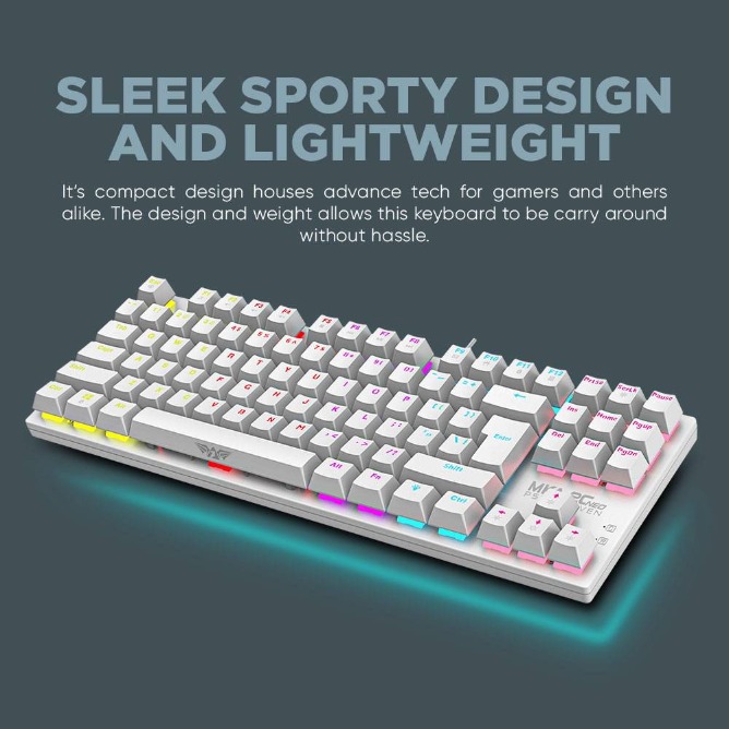 | Features | - 87 Keys (KevlarTech Keyboard) - 12 Backlight Effects - Hotswappable Modular Switch - 25 Keys Anti-Ghosting - Sleek Sporty Design - Angle Adjustable - KevlarTech high-quality keycaps with lifetime fade-proof warranty |
