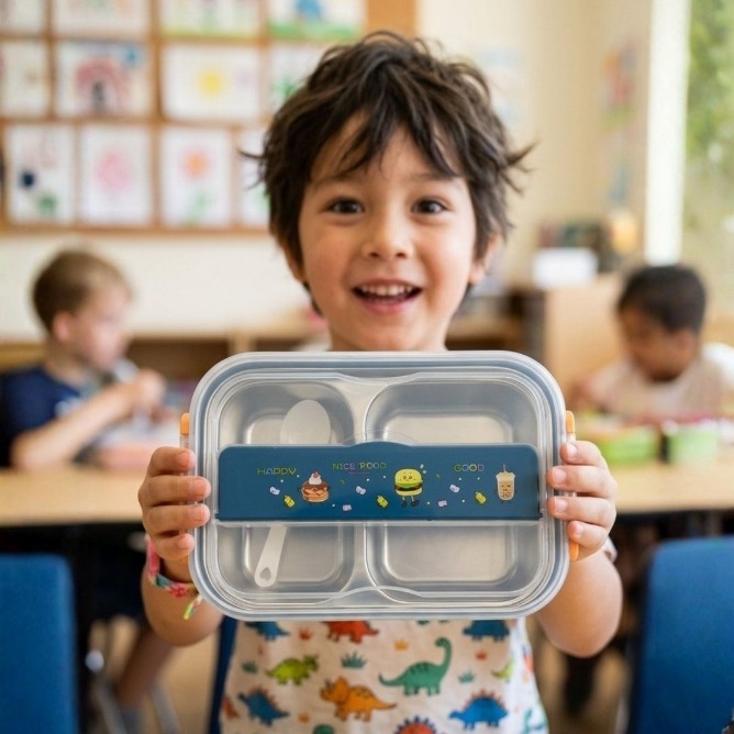 A spacious and durable kids’ lunch box designed to carry a full day’s meal with ease. Ideal for school, picnics, and travel, it features multiple compartments to keep food fresh, organized, and mess-free.