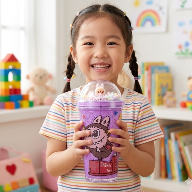 A fun and stylish kids’ water bottle featuring a crystal-clear “ice cup” design with a built-in straw for easy sipping. Perfect for school, travel, or outdoor activities, it combines vibrant looks with practical functionality to keep kids hydrated all day.