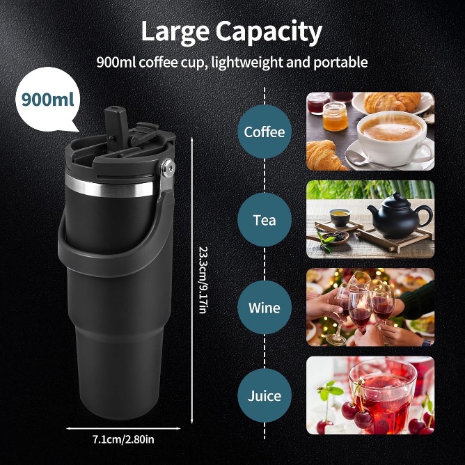 The Stainless Steel Vacuum Insulated Travel Tumbler (900ml) is designed to keep your beverages at the perfect temperature for longer. Crafted with high-quality stainless steel and vacuum insulation, it is ideal for hot or cold drinks. Its sleek, durable design makes it perfect for travel, office, gym, or everyday use.