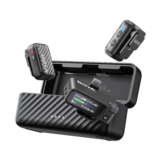 ● 1.1-inch AMOLED touchscreen and precision dial for smooth, intuitive adjustments. Fine-tune volume, noise cancellation, and EQ presets remotely via the BOYA Central app — all while monitoring device status in real time.