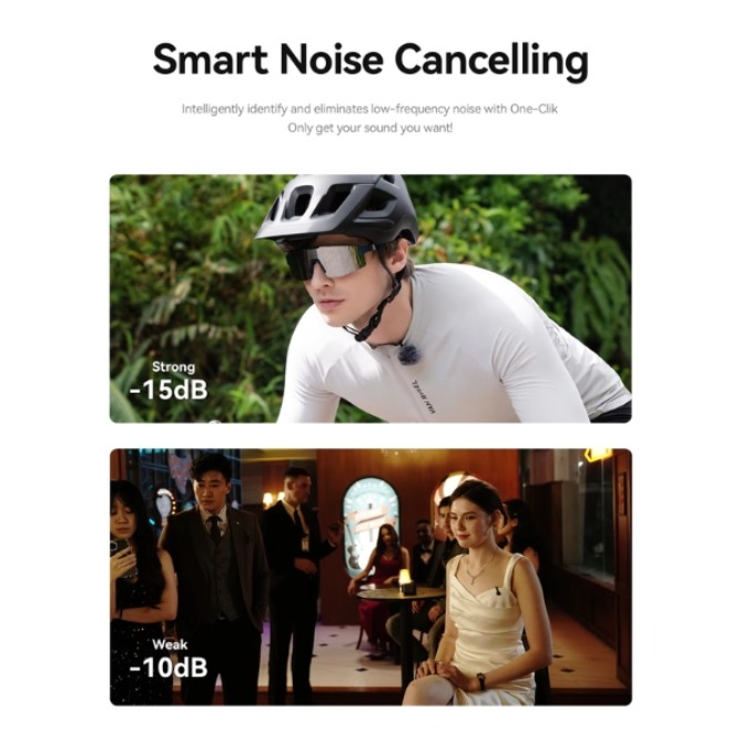 Audio / Features: 48kHz/24-bit, 70dB SNR, 116dB SPL, ENC noise cancellation (Strong/Weak), ultra-light 7g transmitter, titanium clip design
