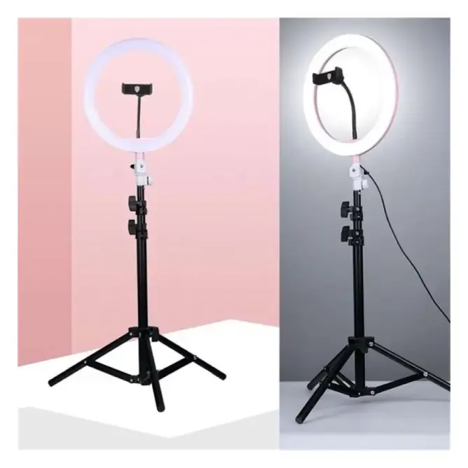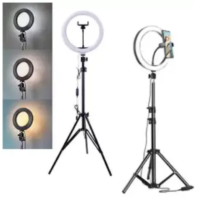 Featuring a powerful LED ring with adjustable brightness and color modes, it lets you achieve flawless lighting for every scene — from warm, cozy tones to bright daylight effects. The adjustable tripod stand extends to your preferred height, making it ideal for tabletop use or full-body shoots.